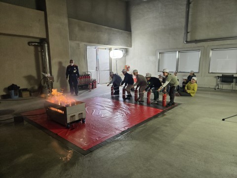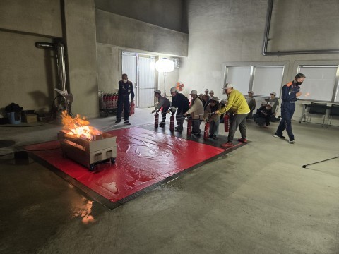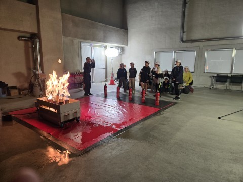 火災への初期消火について、学んでいます。