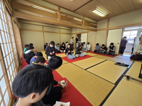 堺市の取り組みで行われている茶の湯体験を行いました。はじめての体験に、少し緊張した面持ちでしたが、とても楽しい体験になったようです。終わってからのふりかえりでもとても楽しかったことが伝わってきました。