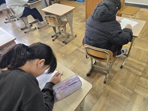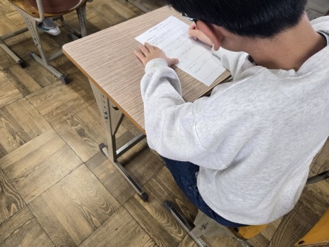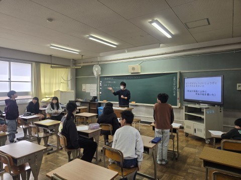 自分達の活動をふりかえりながら、三学期につなげました。放送内容を少しかんでしまうことがあるという反省から、みんなで早口言葉を練習しました。