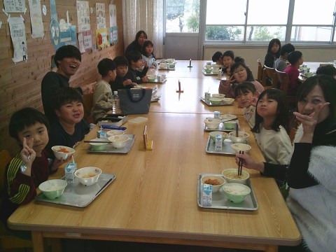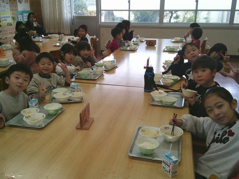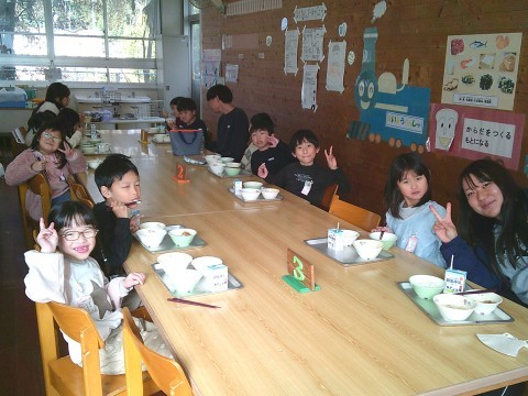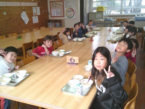 いつもと違ったランチルームでの給食に、1年生の子どもたちは、とても嬉しそうでした。