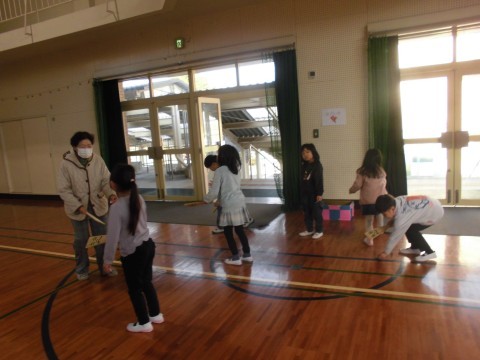 今日は,地域の方にお越しいただき,昔遊び交流会を行いました。