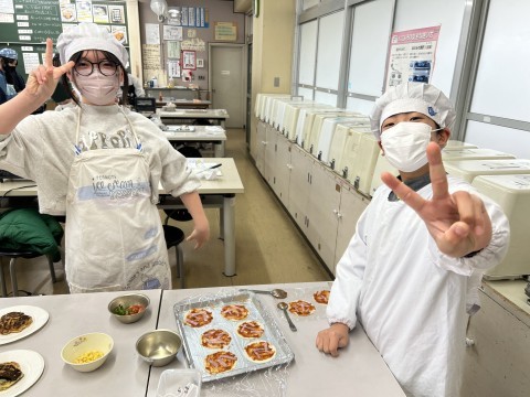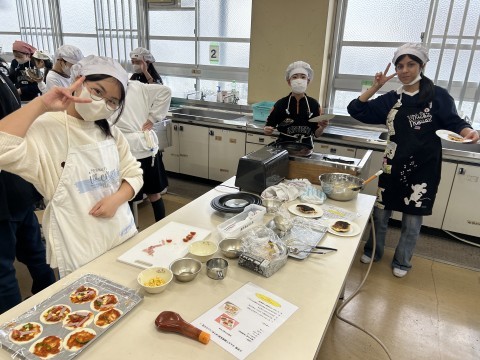 最後の調理実習でした!「バナナパンケーキ」と「ぎょうざの皮ピザ」を作りました。