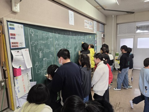 2月のお楽しみ会の「絵しりとり」を行っています。