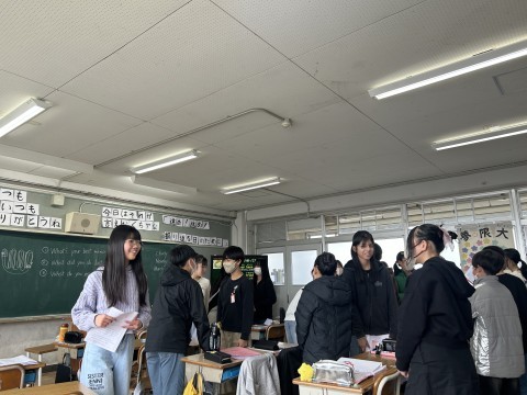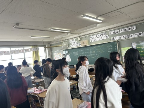 過去形の学習を行っています。小学校のベストメモリーや先週にしたことなど、1分間友達と話し続けています。質問やリアクションをして、3年生から学習してきたことが積み重なって、確実に今の力になっています!