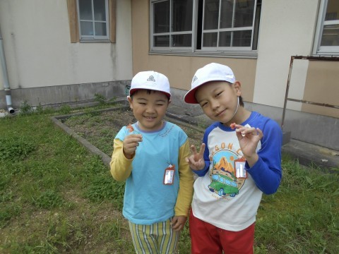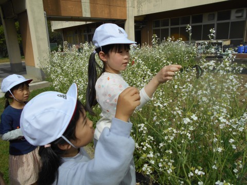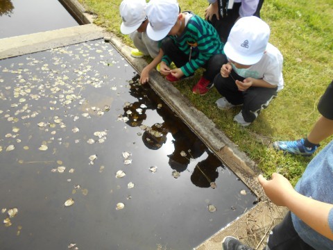 オレンジ色や白色のお花、蝶々やメダカなどたくさん発見している子どもたちでした。