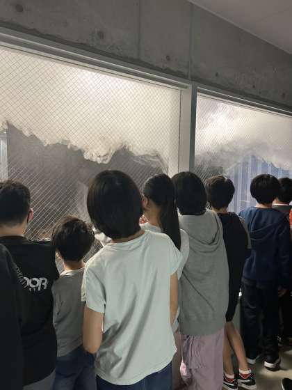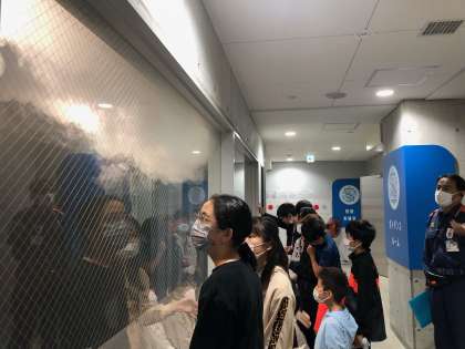 低姿勢避難訓練のあとは、実際に煙を炊いた部屋で避難訓練をしました。