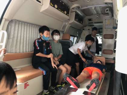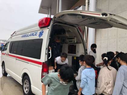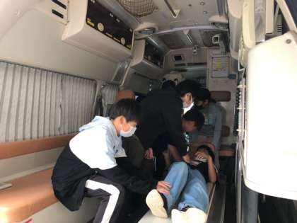 救急車の中は、いろんな装備がいっぱいでした。この中で人命救助をしているなんて、すごいです。