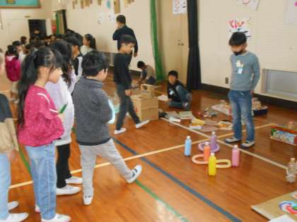 1年生、2年生のおもちゃランドで遊ぶ