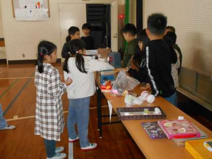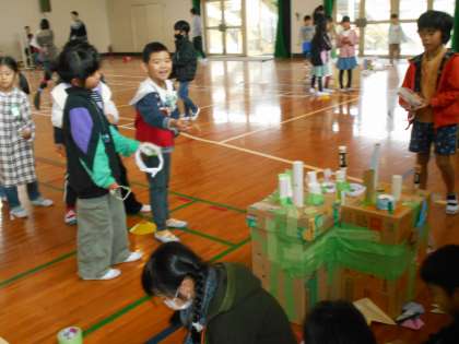 2年生に招いて頂いて、2年生の作ったおもちゃランドで遊ばせてもらいました。子どもたちはたっぷり遊び、景品もたくさんもらって大喜びでした。