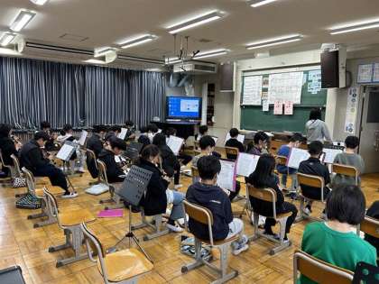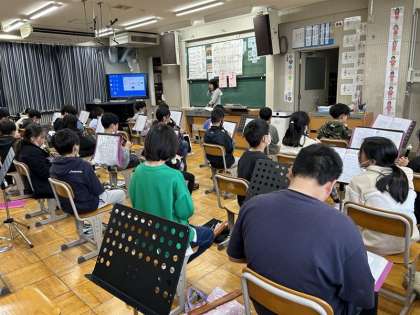 リコーダーで練習をしている「残酷な天使のテーゼ」。