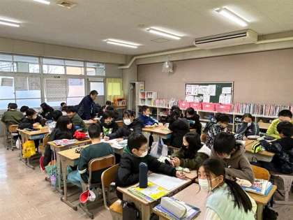 社会の情報の学習では、能登半島の地震で自分が感じたことや、ニュースを見て思ったことをグループで共有していました。