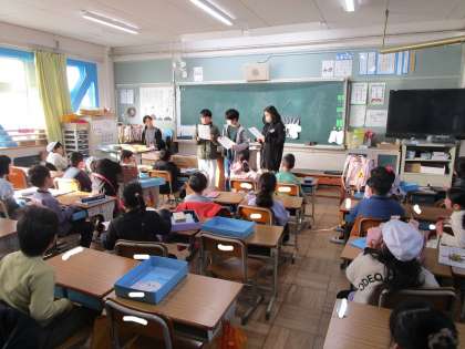今朝、保健委員会と給食委員会のみなさんが、各クラスで今月の保健と給食の目標を発表しました。今月の保健目標は「元気に外で遊ぼう」、給食目標は「牛乳をしっかりのもう」です。