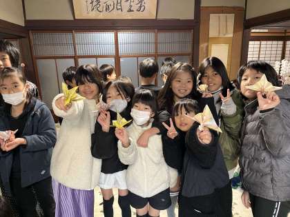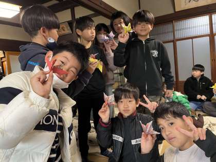 最後には、祝い鶴の折り紙を教えてもらいました。