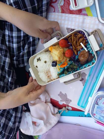 朝から作ってくれたお弁当とってもおいしそう〜!!!