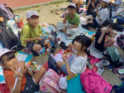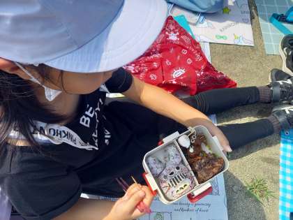 今日は天気がよかったのでとなりのコスモ中央公園でごはんを食べました。