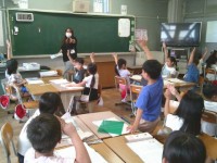 2年生に、世界の遊びを教えてもらいました。いろんな国のクイズを出してもらったり、...