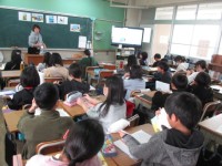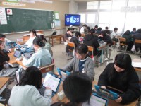 社会では,色々な国について調べたことを班で交流していました。パソコンを活用して,...