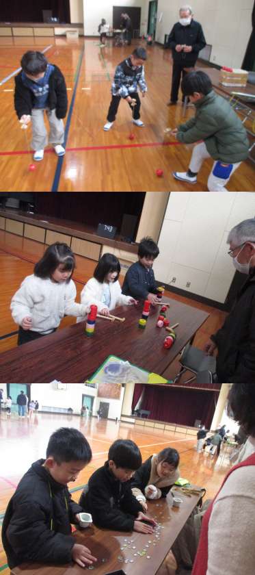 寒い中でしたが、昔遊びの体験を通して地域の皆様とふれあうことができてとてもよかったです。1年生のみなさんも帰ったら、お家の人に楽しかった遊びのお話をしてくださいね。