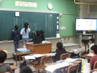 1年生の図書の様子です。本を借りるときは並んで、静かに順番を待つことができています。楽しい図書の時間です。