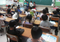 1年生は、ひらがなを学習していました。今日は、「ほ」を習いました。みんなで空書きしたり、「ほ」のつく言葉を発表したりしました。「ほし」「ほたる」など、たくさん発表することができました。