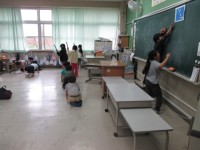 5・6年生の体育委員が前に出て、堺っ子体操を全員で行いました。