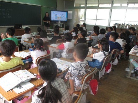 外国語活動の時間でした。好きか嫌いかを聞いたり答えたりするときの表現を学んでいました。“Do you like~?”や“Yes, I do.”、“No, I don't.”を使って練習しました。