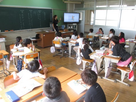国語は,「かん字のひろば」の学習でした。先生の出す文作りのミッションに,班で協力して取り組みました。