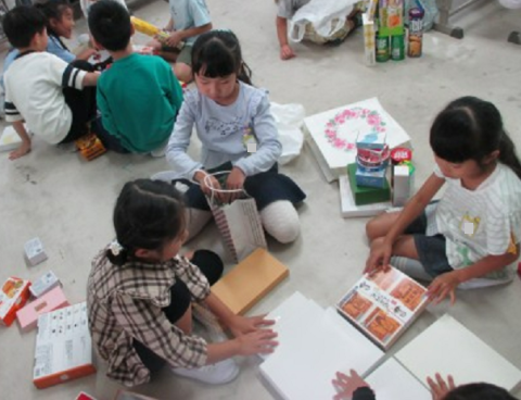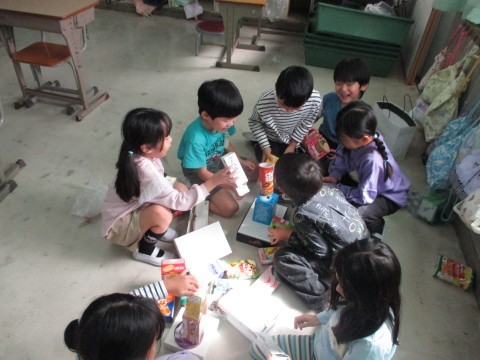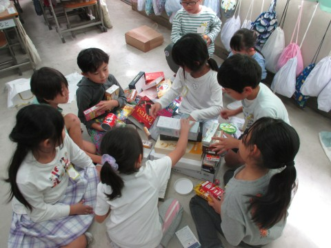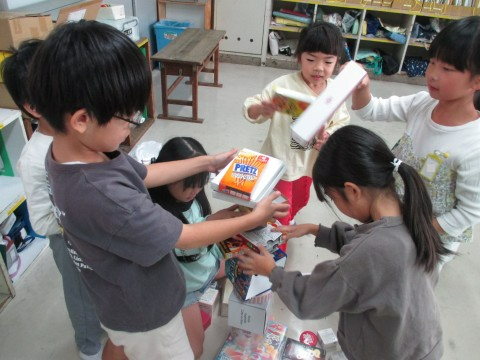 色々な形の箱を使って,立体を作っていました。タワーや城など,班のみんなで考えて楽しんでいました。