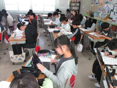 算数では,体積の学習をしていました。「底面積×高さ」の公式を使って,円柱の体積を求めました。