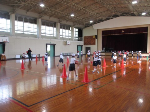 今日も体育館でボール運動をしました。チームに分かれて,楽しそうに中当てをしていました。