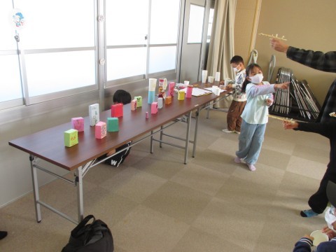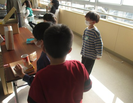 おもちゃランドのお店ができあがりました。今日は,おうちの人たちにお客さんになって楽しんでもらいました。