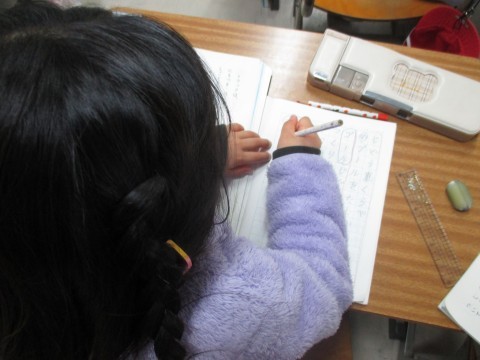 国語では,「じどう車くらべ」を読んでいました。今日のめあては,「ゴールをたしかめよう」です。最後は,学習のふりかえりもしました。