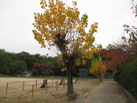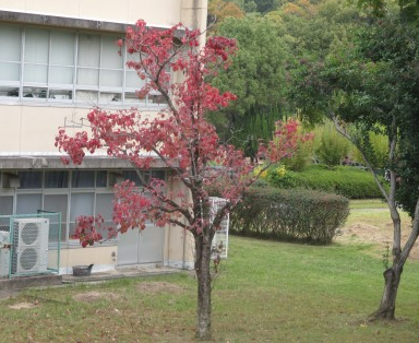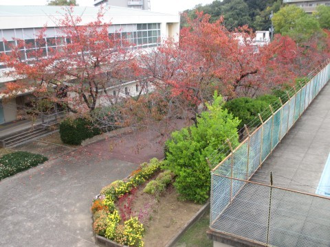 校庭のサクラやポプラ,ハナミズキが,赤や黄に染まってきれいです。秋も終わりに近付いてきました。