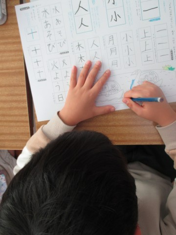 書写プリントをしていました。今日は,漢字の画の終わりの「とめ」「はね」「はらい」に気を付けて書きました。