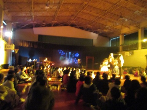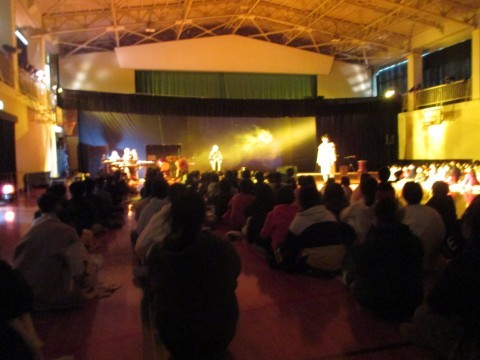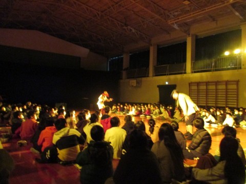 劇団の方をお迎えし,芸術鑑賞を行いました。宮沢賢治の「注文の多い料理店」の音楽劇です。いろいろな楽器を演奏したり,物語を音楽に乗せたりしていて,楽しく鑑賞することができました。 また,目の前で演技をされていたので,とても迫力がありました。