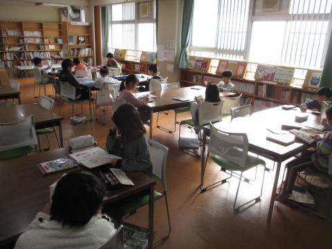 図書室で静かに読書をしていました。読み終わった本の感想を読書ノートに書いている人もいました。