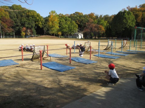 体育では,鉄棒をしています。前回りやツバメなど,いろいろな技を習得し,一人ずつ披露していました。一人終えるたびに,みんなから拍手が起こっていました。