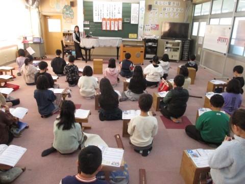 音楽では,リコーダーを吹いていました。高いレの音が出てくる曲を練習しました。
