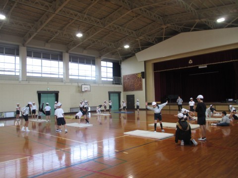体育では,マット運動をしていました。班に分かれて,側転をしました。足をピンと伸ばせるよう,繰り返し練習しました。