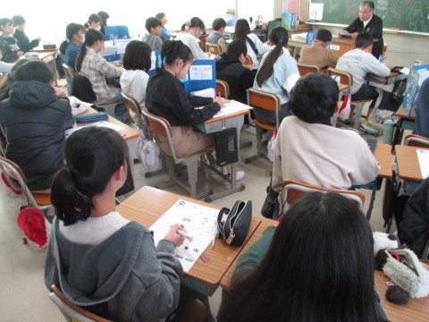 家庭科では,「くふうしよう おいしい食事」の学習のまとめの問題に取り組みました。終わったあとは,みんなで答え合わせをして,学習内容を確かめました。