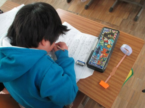 国語では,ストロー飛行機の作り方の説明を書いていました。「まず」「つぎに」「それから」「さいごに」を使って,順番にまとめました。