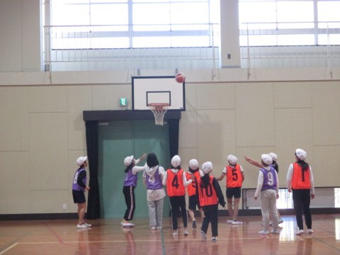 体育では,バスケットボールをしていました。今朝も寒かったですが,体を動かして温まりました。