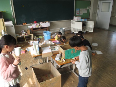 明日のおもちゃランドに向けて,それぞれのお店で,前回使い切った物をもう一度作ったり,足りない物を増やしたりしていました。