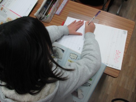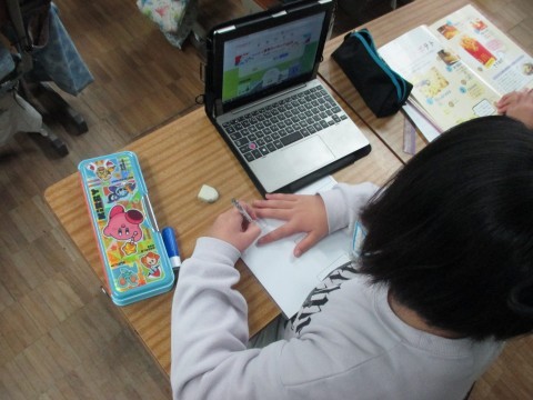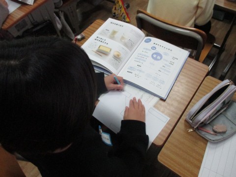 国語の今日のめあては,「せつ明する食べ物を調べよう」でした。食べ物について本やインターネットで調べ,わかったことを書き出していました。