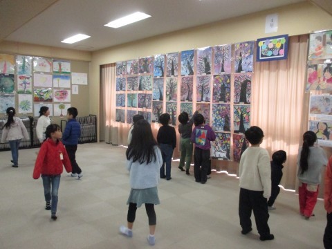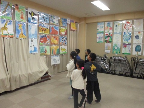 校内図画展も見に行きました。自分の描いた絵も見つけてうれしそうにしていました。