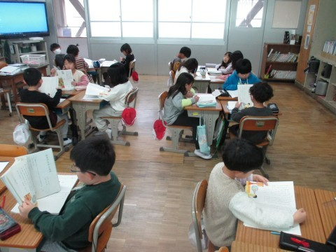 国語では,物語の音読をしていました。一文ずつ,みんなで順番に読みました。
