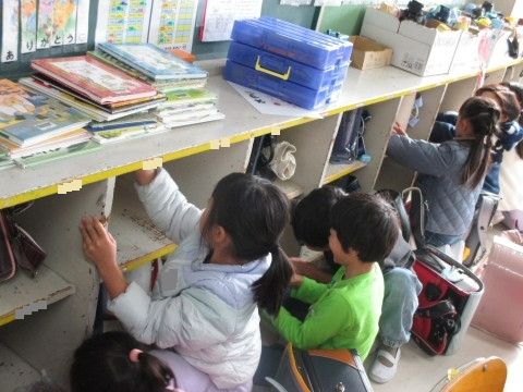 学期の終わりに,自分の机やロッカーを掃除しました。スポンジで擦ったり雑巾で拭いたりすると,きれいになりました。これで,3学期も気持ちよく使えそうですね。