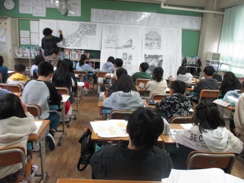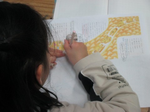 国語では,物語の中で,登場人物の気持ちが変わった理由を読み取っていました。本文に線を引いたり書き込んだりして,考えを発表しました。