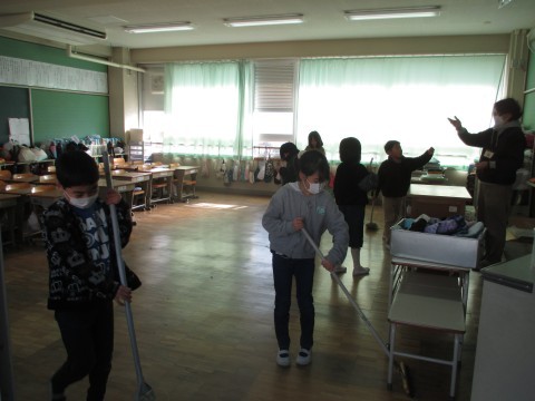 いつもより長い時間でしたが,どの学年も静かに掃除をしています。
