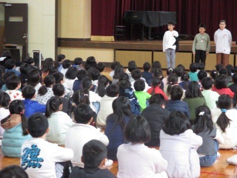 2学期の終業式を行いました。冬休みの過ごし方について,先生や児童会から話がありました。健康で安全に,楽しい冬休みを過ごしてください。